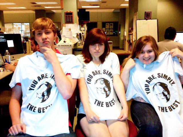 T-shirt commemorating a poorly-timed and poorly-worded email by Brian S. Brooks, longtime dean and figure at the Missouri School of Journalism, in the wake of a racist incident on campus. I sold these to journalism students and presented Brooks with one while walking across the stage at graduation. I wonder if he still has it?